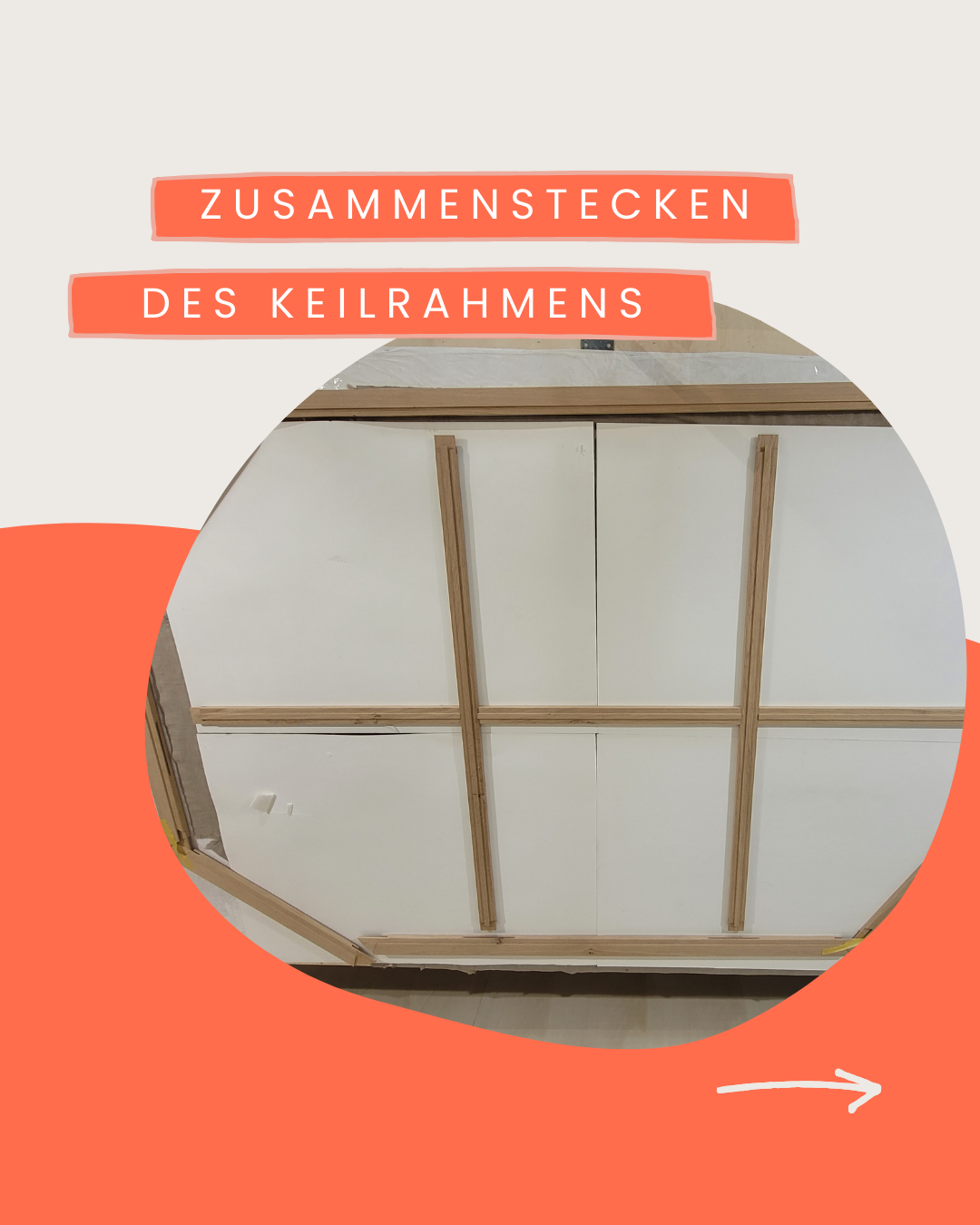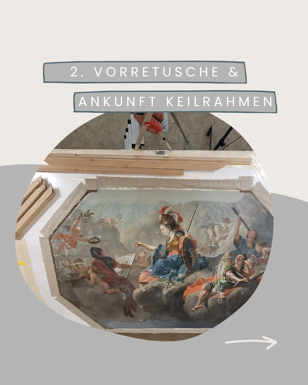🔹 Neuer Keilrahmen: Für das großformatige Deckengemälde wurde ein spezieller Keilrahmen als Sonderanfertigung gefertigt - stabil, verzugsarm und auf die besonderen Anforderungen des Werkes