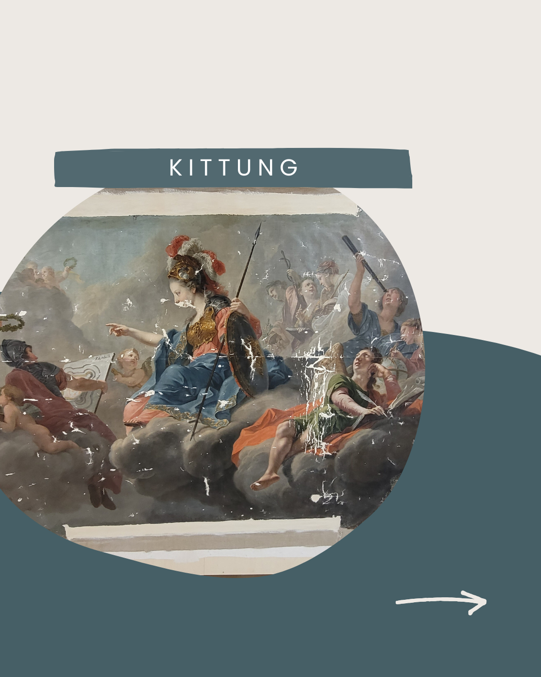 Nach der Kittung der Fehlstellen folgt nun die nächste Etappe in der Bearbeitung des großformatigen Gemäldes: